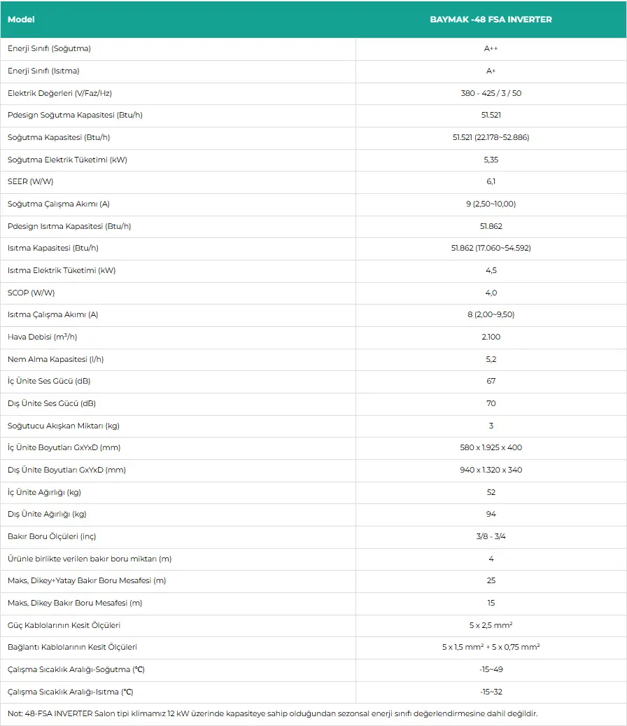 Baymak 48.000 Btu/h FSA Salon Tipi Klima